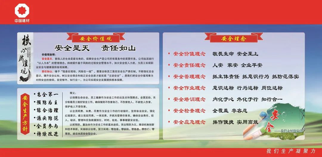 在长期实践中,中国建材集团各企业认真履行安全生产原则,广泛发动、精心组织开展安全文化活动,不断巩固创新安全文化建设。