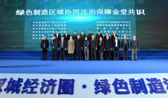 会议伊始,县法院院长徐文波宣读《绿色制造区域协同法治保障金堂共识》起草背景及内容;成都中院、成都市检察院、德阳中院、宜宾中院、重庆一中院、重庆三中院、省能源法学会、成都市淮州新城管委会、西南石油大学、宜宾凯翼汽车、通威太阳能(金堂)、成都巴莫科技作为“府院校企”代表,共同发布六点共识:一是坚持绿色发展理念,强化方向引领;二是构建一体配套格局,强化制度保障;三是聚焦绿色制造保护,强化企业合规;四是激活企业科技基因,强化数字赋能;五是筑牢法治服务阵地,强化多元共治;六是健全协同联动机制,强化系统集成。