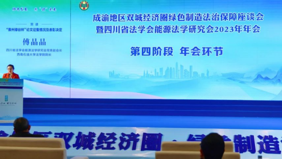 会议当天,四川省法学会能源法学研究会常务副会长、西南石油大学法学院院长、教授傅晶晶宣读“淮州绿谷杯”论文征集情况及表彰决定;四川省法学会能源法学研究会会长、西南石油大学法学院教授卫德佳作四川省法学会能源法学研究会2023年度工作报告;四川省法学会能源法学研究会副秘书长、西南石油大学法学院副教授吴晓敏宣读《会议碳中和报告》。