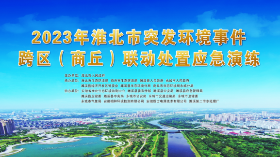 演练由淮北市人民政府主办,淮北市生态环境局、商丘市生态环境局、濉溪县人民政府、永城市人民政府、濉溪县经济开发区管委会、濉溪县生态环境分局、商丘市生态环境局永城分局承办,安徽省淮北生态环境监测中心、濉溪县委宣传部、濉溪县公安局、濉溪县应急管理局、濉溪县卫健委、濉溪县水务局、永城市公安局、永城市交通运输局、永城市卫健委、永城市气象局、安徽相和环境检测股份有限公司、安徽理士电源技术有限公司、濉溪第二污水处理厂协办。