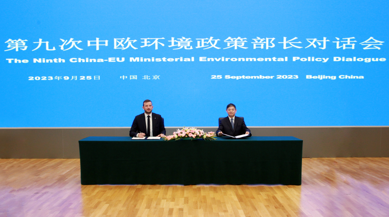 会后,黄润秋与辛克维丘斯共同签署了第九次中欧环境政策部长对话会纪要。