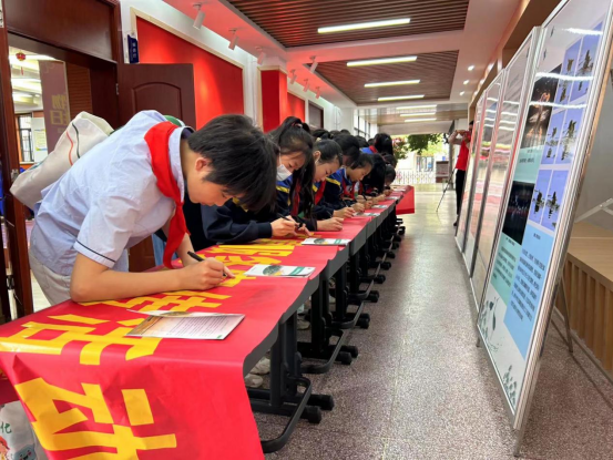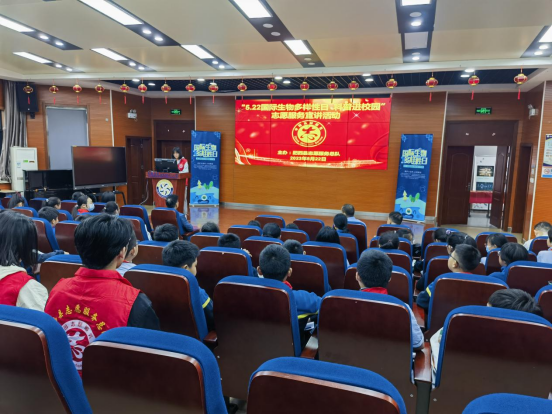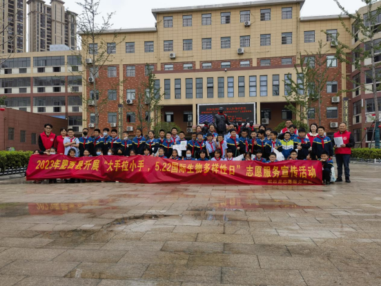 课后,同学们在印有“大手牵小手,5.22国际生物多样性日”主题宣传横幅上,签下自己的名字,以实际行动表达保护生物多样性的坚定决心。