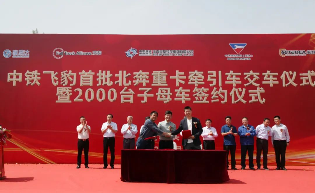 北奔重汽与中铁飞豹快线(天津)国际物流有限公司签订了2000台子母车采购协议,与中铁飞豹所托(珠海)智慧物流科技有限公司签订战略合作协议