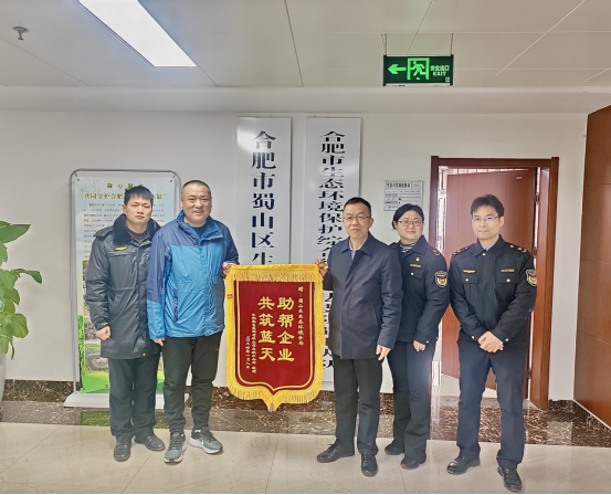 1月9日,合肥热电集团众诚分公司负责人将一面写着“助帮企业,共筑蓝天”的锦旗送至蜀山区生态环境分局,以表示感谢。