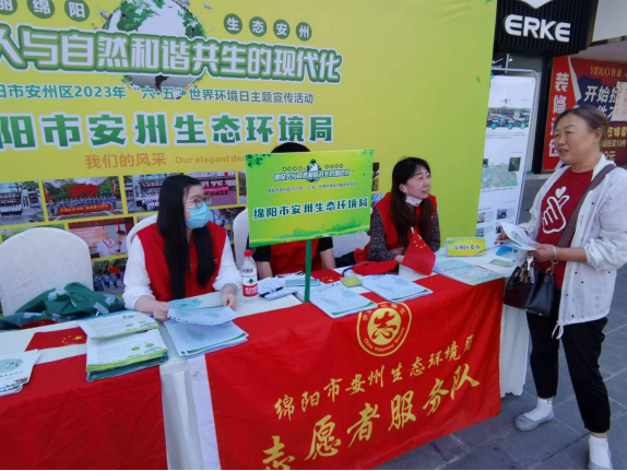 2023年6月5日,绵阳市安州区生态环境保护委员会积极组织区环委会成员单位,联合绵阳市生态环境保护协会、绵阳师范学院、环保志愿服务组织等25个单位及公益企业,在花荄镇欧奇摩尔百货广场开展“六.五”世界环境日大型系列宣传主题活动。